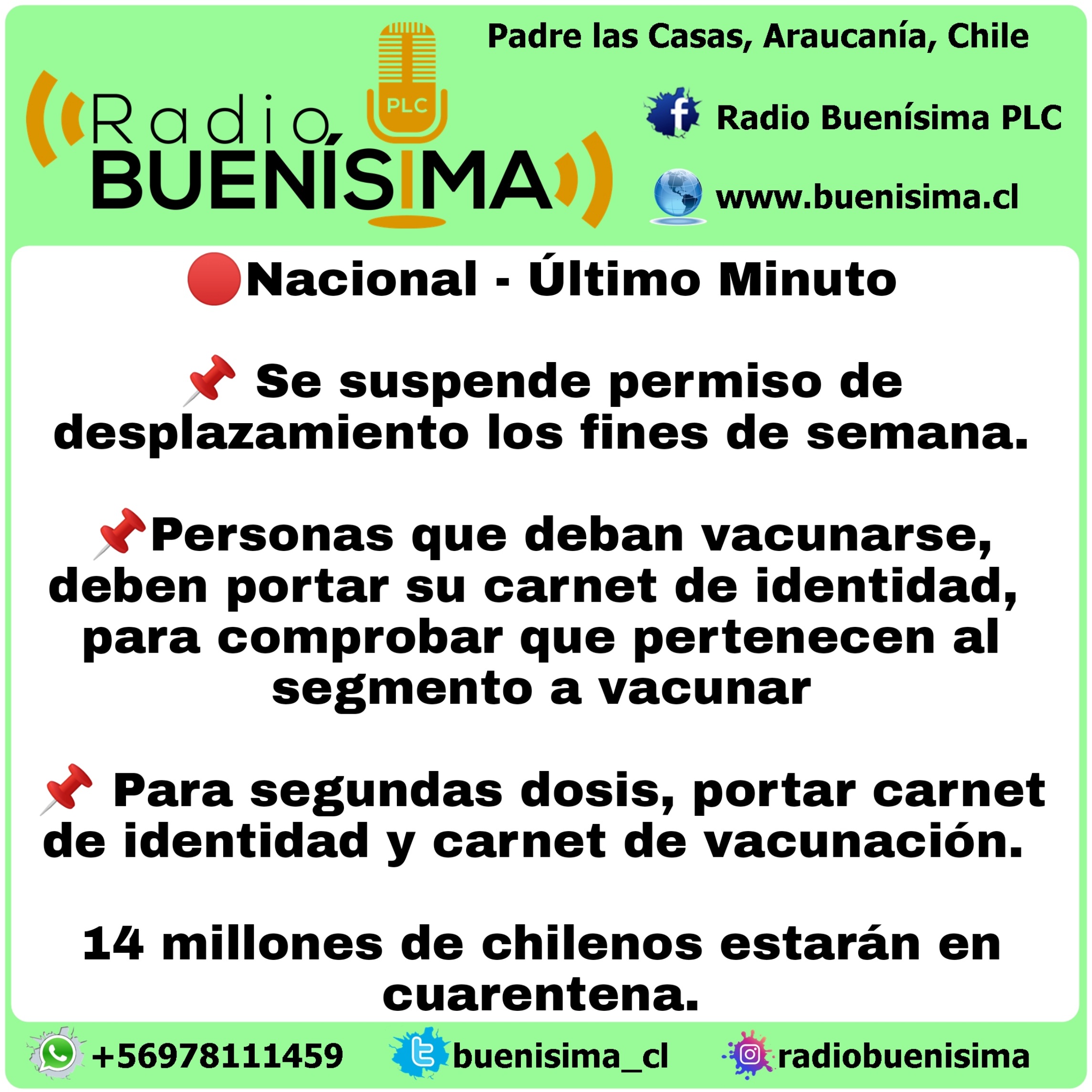Por otra parte, la autoridad comunicó que el horario protegido para actividad física se extenderá desde las 06:00 a las 09:00 horas para fines de semana y festivos. Durante esta banda, las personas podrán salir sin permiso para realizar actividades deportivas de forma individual (caminar, trotar, andar en bicicleta, etc.), siempre y cuando no se use vehículo ni transporte público.